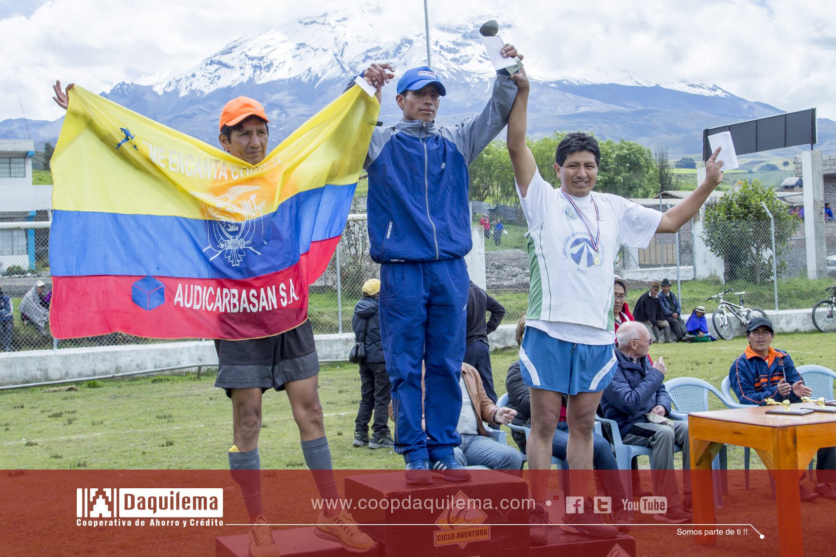 La Cooperativa de Ahorro y Crédito “Fernando Daquilema” Ltda., siempre en los grandes eventos del país, en esta ocasión fue auspiciante de la XIII Edición de “La Carrera de Chimborazo, La Más Alta del Mundo”, misma que tuvo lugar este domingo 10 de junio de 2018, con la participaron 150 atletas nacionales y extranjeros de alto rendimiento.