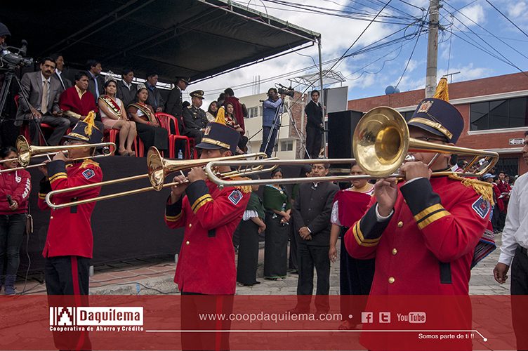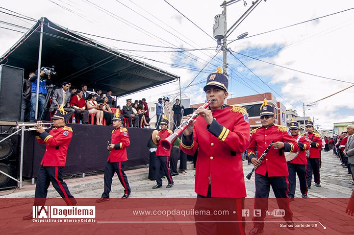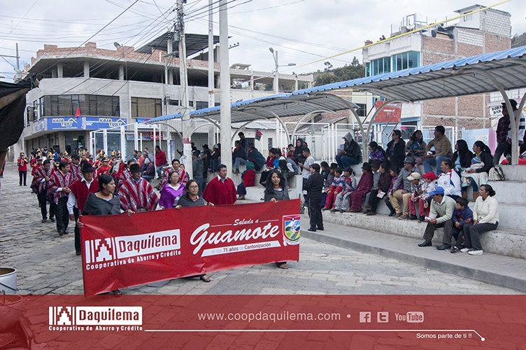 La Cooperativa de Ahorro y Crédito Fernando Daquilema Ltda., desfiló acompañado de la banda del GAD Municipal de Riobamba, el recorrido fue desde el barrio San Juan hasta los exteriores del gobierno municipal, a su paso por las empedradas calles de Guamote recibieron el saludo y la gratitud de quienes se apostaron para observar las incidencias del desfile.