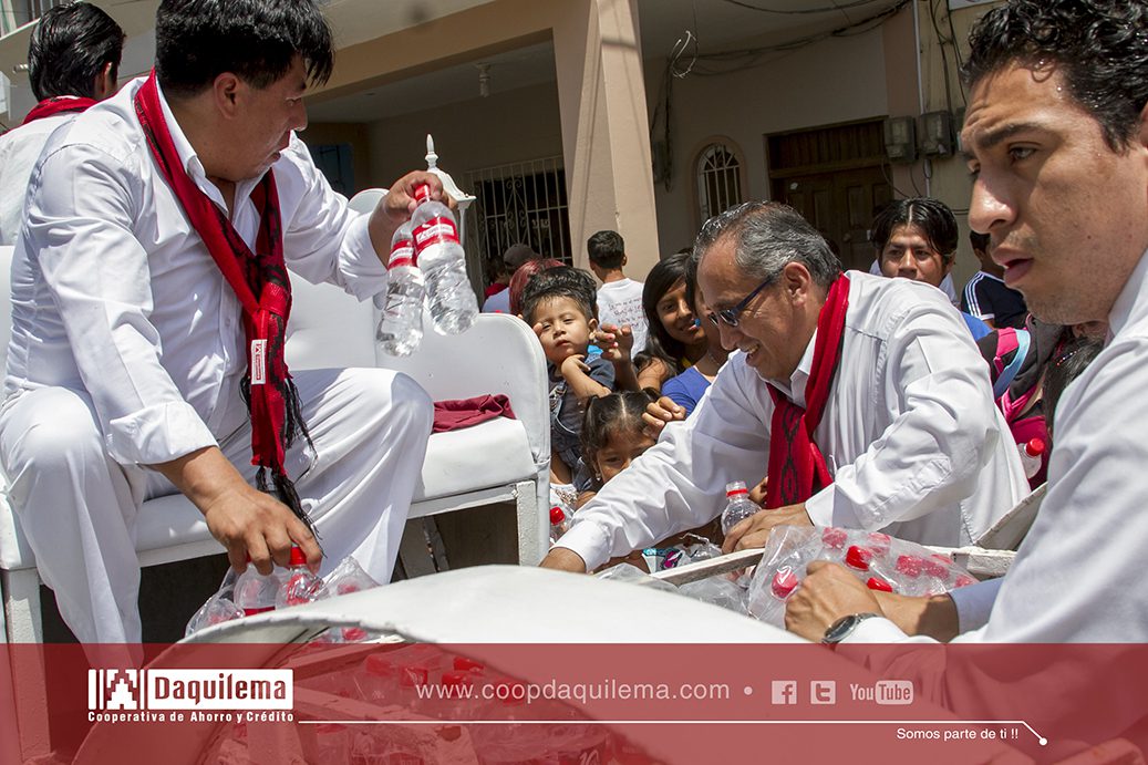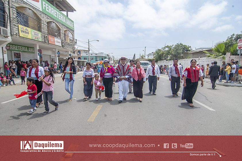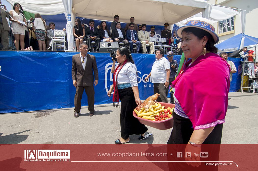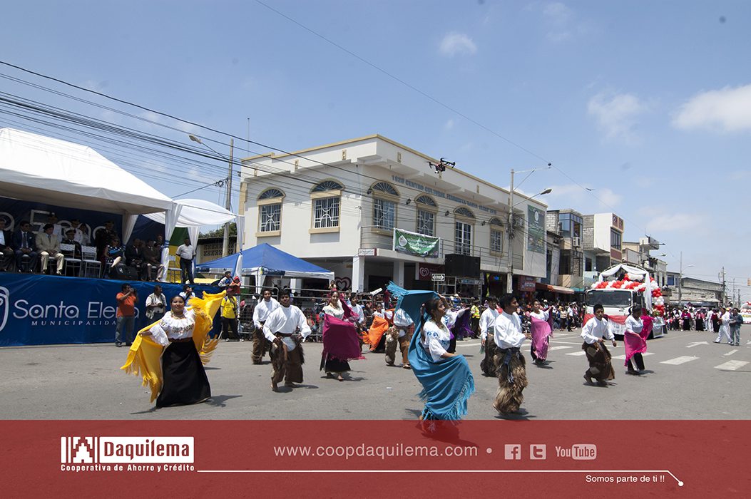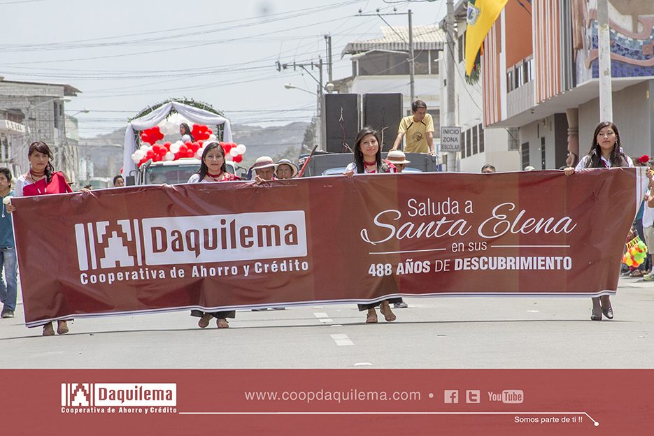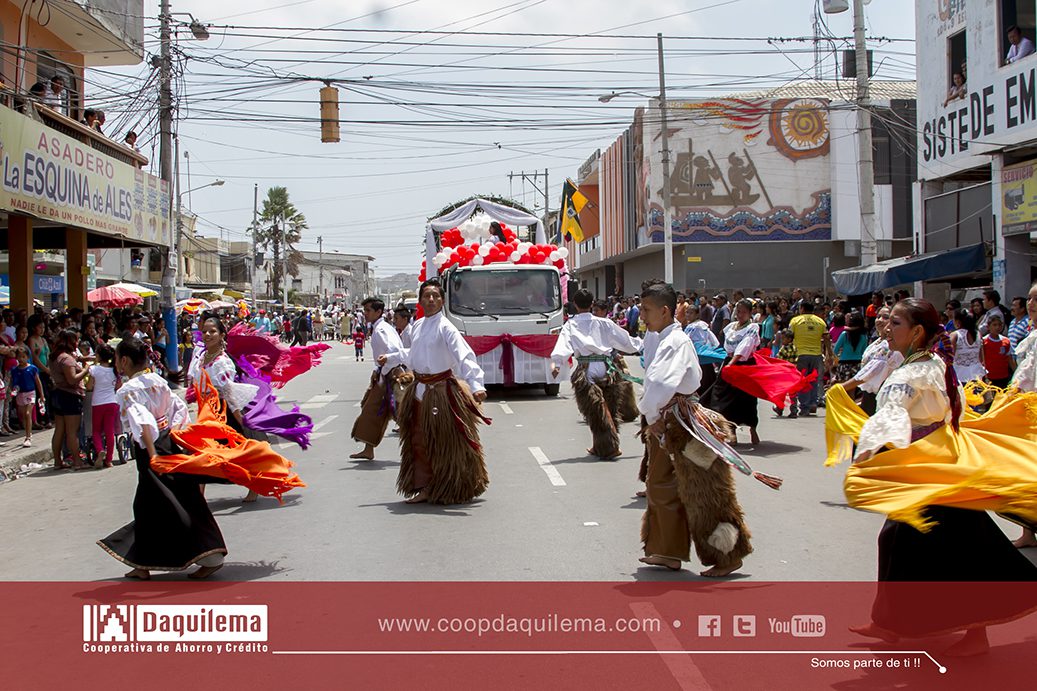 La Cooperativa de Ahorro y Crédito Fernando Daquilema Ltda., saludó a los habitantes de esta tierra peninsular con la presencia de los bocineros y chimbuceros del pueblo Puruwá, una llamativa danza cristiana, un carro alegórico desde donde la Reina de la cooperativa saludó a miles de personas en el trayecto.