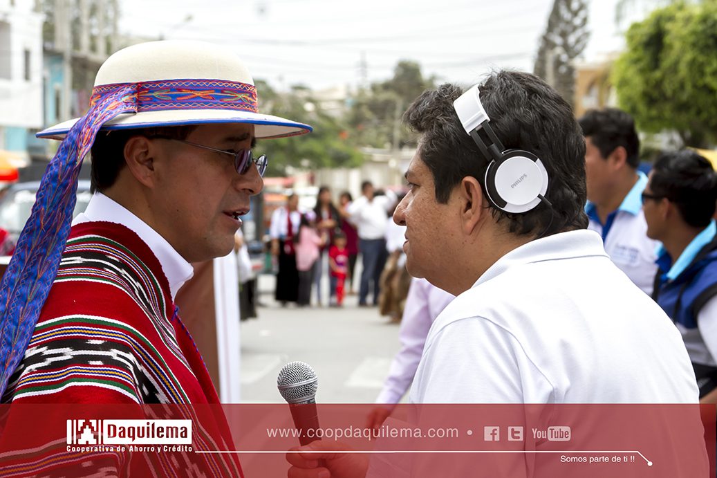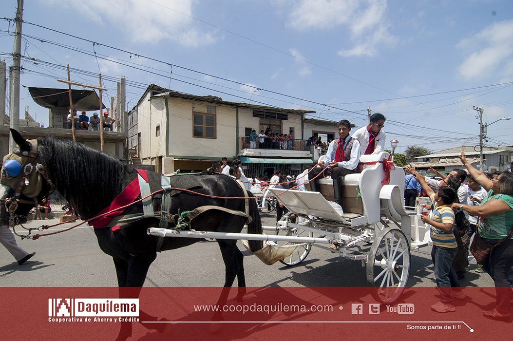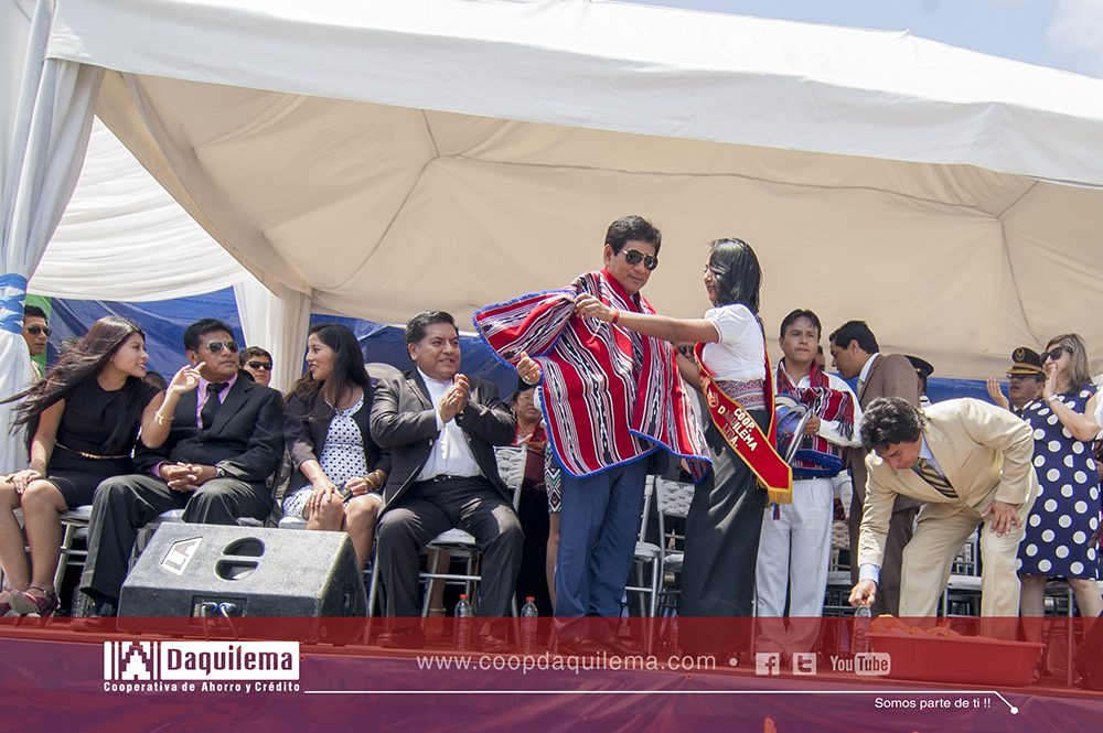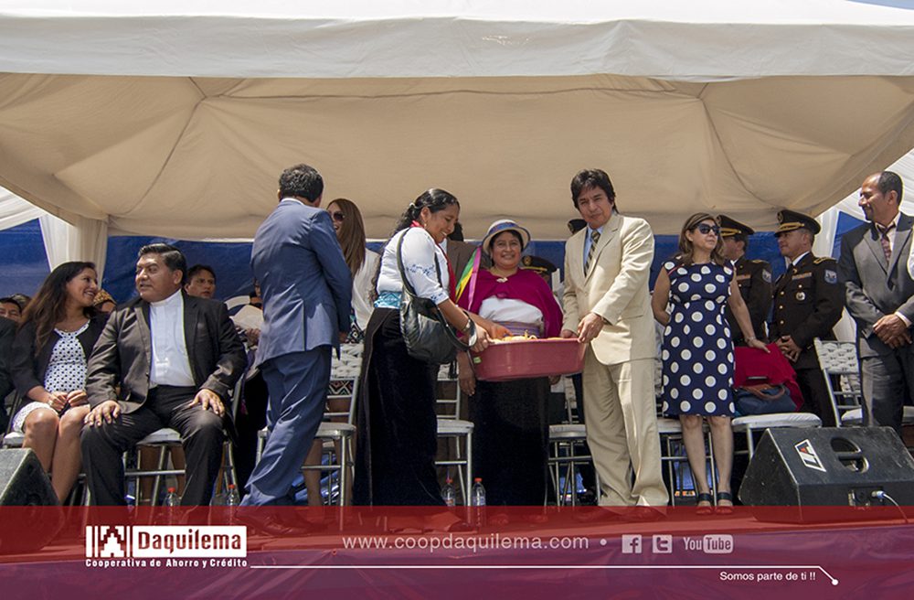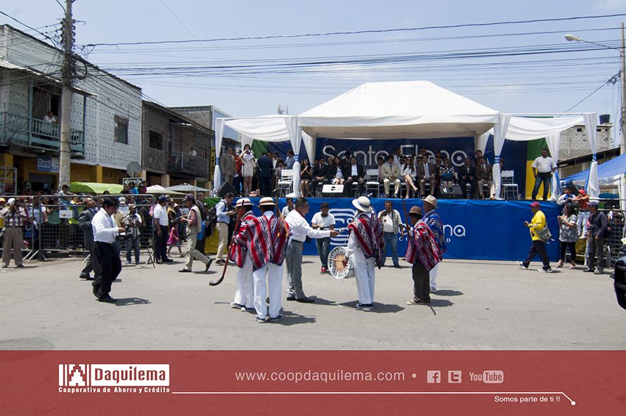 La Cooperativa de Ahorro y Crédito Fernando Daquilema Ltda., saludó a los habitantes de esta tierra peninsular con la presencia de los bocineros y chimbuceros del pueblo Puruwá, una llamativa danza cristiana, un carro alegórico desde donde la Reina de la cooperativa saludó a miles de personas en el trayecto.