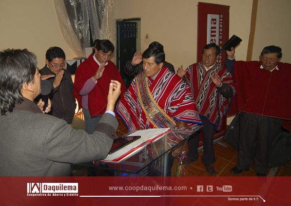 El pastor Pablo Guachilema Minta recibió la banda presidencial de las manos de presidente cesante Lic. Francisco Bagua. En su intervención el nuevo presidente se comprometió a dar mayor impulso a los proyectos en proceso además de los nuevos que tiene previsto a ejecutar en coordinación con los directivos, equipo gerencial, administrativo y ejecutivos de la Coop. Daquilema Ltda. cuya visión para el 2017 es ser una entidad financiera del segmento uno.